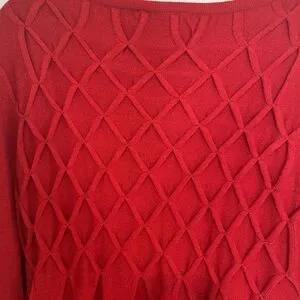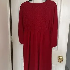 Red sweater dress with so much detail on upper portion - front and back. Comfortable and very stylish.