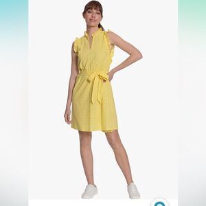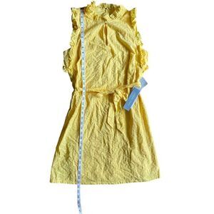 London Times Women's Ruffle Neck and Armhole Dress with Waist Tie Size 8