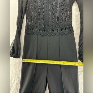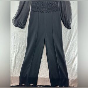 BEBE Black Lace Sheer Bodice Long Sleeve Jumpsuit Size M 6 - Flaw