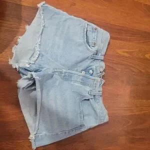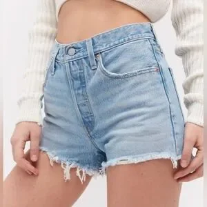 Levis light wash 501 shorts in gently used condition. I would say "Like New" because there are no flaws. Cotton and flattering fit. Size 26. Retailed at Revolve for around $90