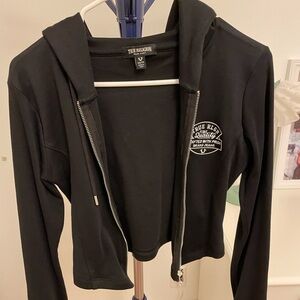 True Religion zip-up hoodie with logo on the front. Never worn, size XS.