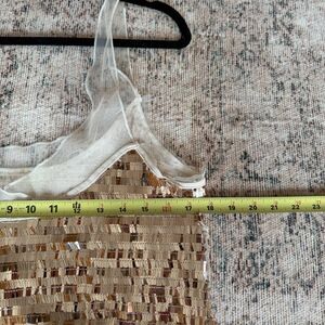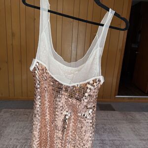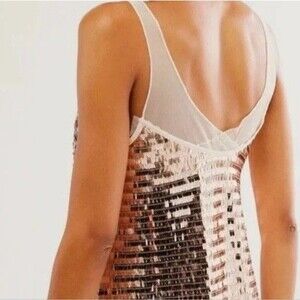 Free People NEW Disco Fever Sequin Mini Slip Dress Rose Gold Champagne Womens L