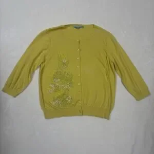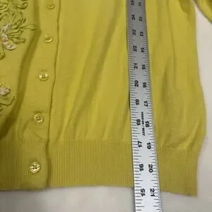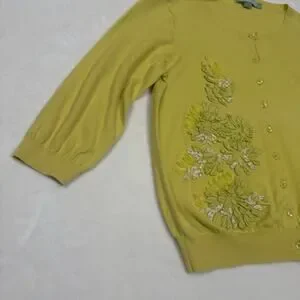 Boden Yellow Floral Applique Cardigan Cotton Sweater US 12 Spring Embellished