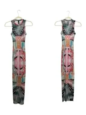 Skims High Neck Summer Mesh Long Maxi Dress Stretchy Deco Train