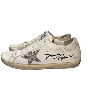 Golden Goose Superstar Leather Sneakers Custom Glitter Star Lace Up 38 EU 8 US
