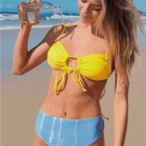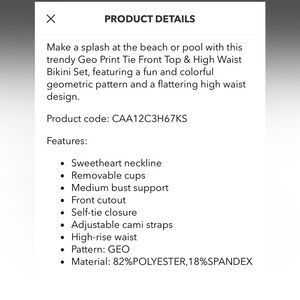 CUPSHE Geo Print Tie Front Bikini Top, removable cups, Sz. L, ties in back