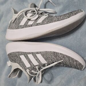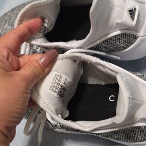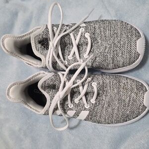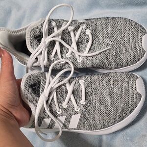Comfortable Adidas sneakers. Sleek black and white design. Ideal for active play. Worned, but in great condition and clean.