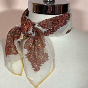 Vintage MCM Burnt Orange Rust Mod Paisley floral fairycore semi sheer neck scarf