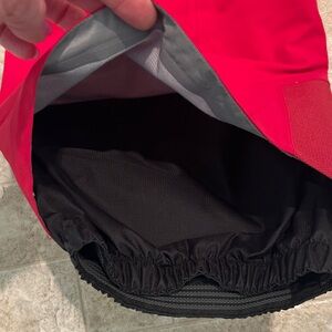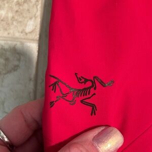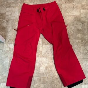 Bold crimson Arc'teryx Gore-Tex snow pants. Ideal for skiing and winter adventures. One small tear on right leg.