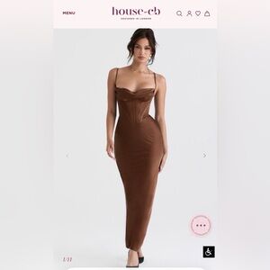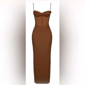 CHARMAINE sz XS Chocolate Corset Maxi Dress NWT