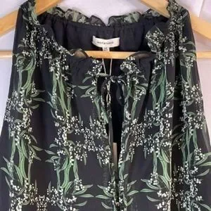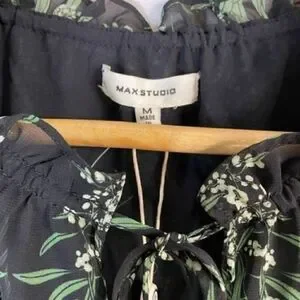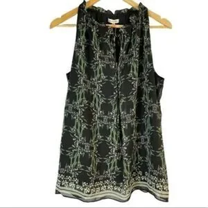Max Studio Keyhole Neck Self-Tie Closure Sleeveless Floral Top Black M NWT