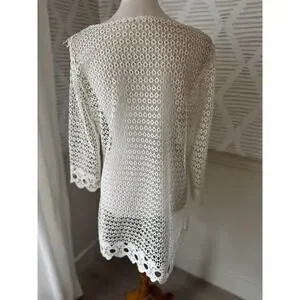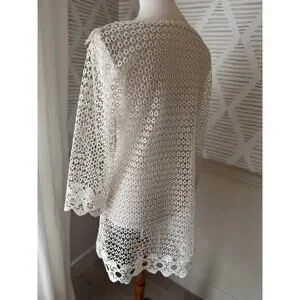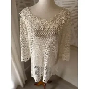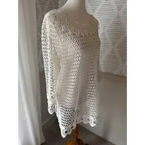 Women’s Small Cream Lace Knit Croquet Coastal Grandma Dress Overlay or Swim Coverup