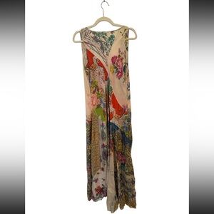 Johnny Was patchwork silk dress in size Medium featuring a stunning mix of floral, paisley, and geometric prints. This boho luxe piece is lightweight and flowy with a flattering sleeveless silhouette and artful mixed panels that make every angle unique.