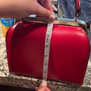 Vintage (1940's) red handbag with a structured design.