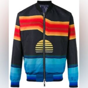 Navy technical bomber jacket from Iceberg with multicolour striping throughout.