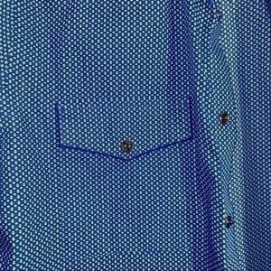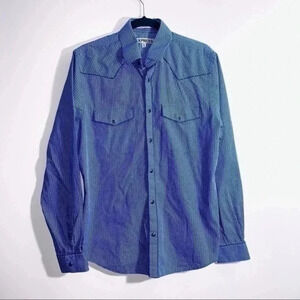 Express men’s blue printed button front dress shirt long sleeve Medium 15.5
