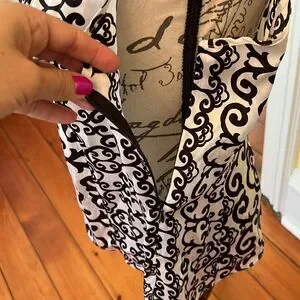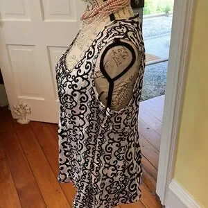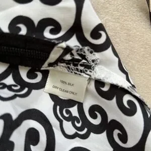 Gorgeous EUC SZ M WHBM 💯 Silk Ivory & Black Scroll Design Top