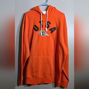 Vibrant orange Champion hoodie. Comfortable and stylish. Perfect for casual wear.