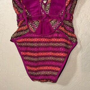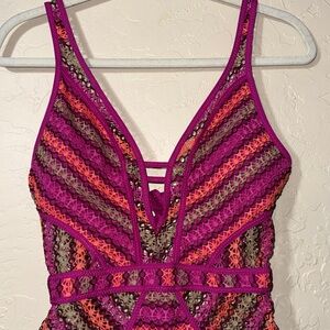 Becca Swim Becca pink Driftwoold Crochet One-Piece Womens Swimsuit size medium