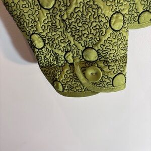 NIE & ZOE Sz L Patterned Unlined Blazer Short Jacket with Contrasting Black Thread Pattern Elevate your style with this chic yellow patterned jacket. Perfect for any occasion, it adds a vibrant touch to your wardrobe.