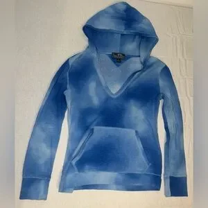 Chic blue tie-dye hoodie by Ralph Lauren. Features a cozy hood and front pocket. Ideal for casual wear.