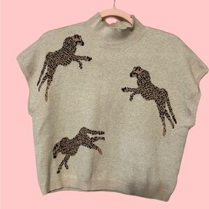 Women’s small, cozy relaxed fit. Short in length, but not completely cropped.