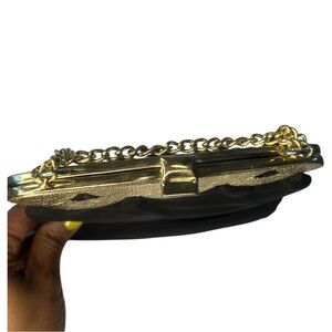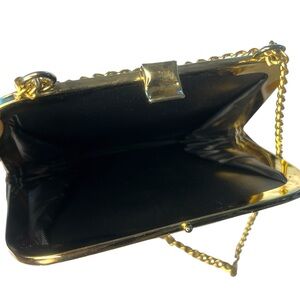 Harry Levine Handbag Black Satin Scallop Framed Satchel Chain Strap Purse