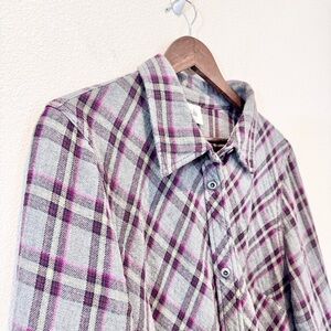 Cabi Highland Shirt #3946 Gray Pink Black Plaid Flannel Shacket Fringe Large