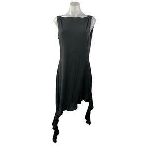 Reformation Quinley Black Sleeveless High Neck Asymmetric Ruffle Tank Dress L