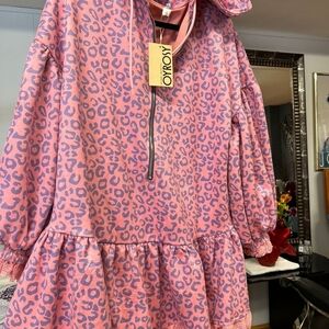 Elegant pink leopard dress with a stylish design. Perfect for any occasion. Size Medium.