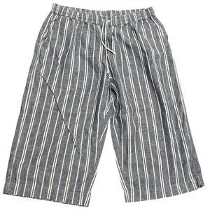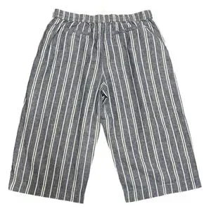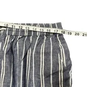 BeachLunchLounge Women's XL Stripe Linen Cotton Cropped Wide Leg Pants Drawstring