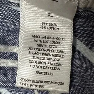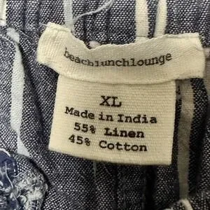 BeachLunchLounge Womens XL Stripe Linen Cotton Cropped Wide Leg Pants Drawstring