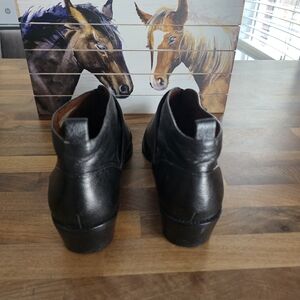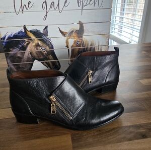 Step out in style with these sleek black leather ankle boots. Featuring a chic gold zipper, these boots are perfect for any occasion.