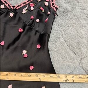 Betsey Johnson X Forever 21 Black Satin Mini Dress Pink Rosette Embellishments