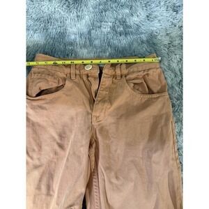The product is a pair of women's denim straight pants in size XS, dyed with chantrelle mushrooms by the brand Rudy Jude. Made of cotton denim, these khaki-colored pants are designed for unisex adults with a regular fit and straight leg style. Perfect for adding a unique and stylish touch to any outfit, these unconventional dyed jeans are sure to make a statement in any wardrobe.