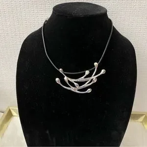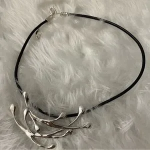 Beautiful statement piece. Sterling silver and black leather. 14-16”