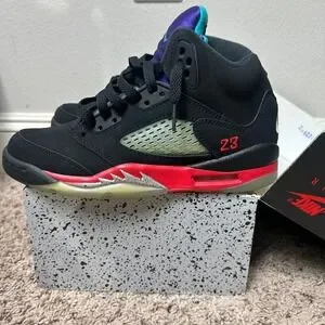 Jordan 5 Retro Top 3 Kids Black Fire Red Grape CZ2989-001 Size 5Y
