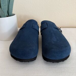 New EMMA New York Nina Navy Suede Buckle Cork Mules