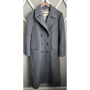 Vtg Pendleton Women's L 100% Virgin Wool Double Breasted Long Overcoat USA -Gray