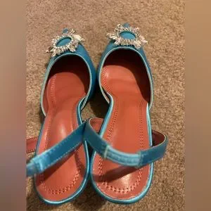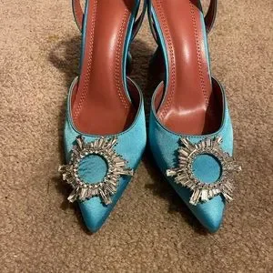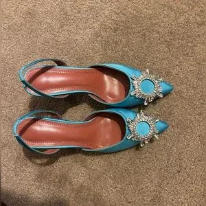 Amina Muaddi look alike blue satin sling-backs. Brand new with a 3” heel height. Love these shoes have them in 3 other colors.