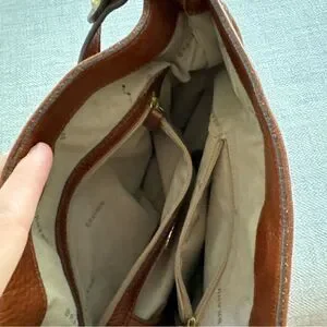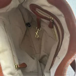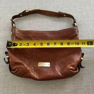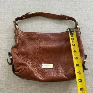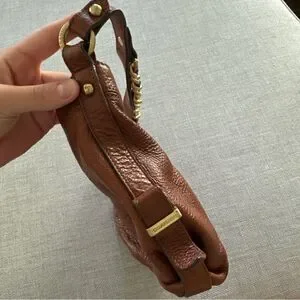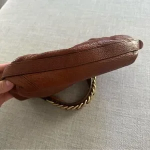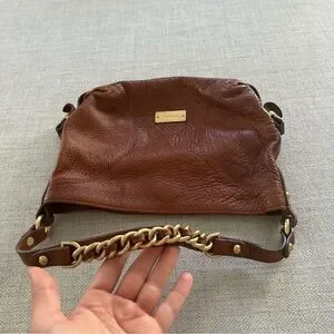 BRAHMIN Brown Pebble Leather Tote Purse Gold Chain Trim Chunky Hardware