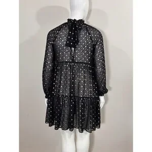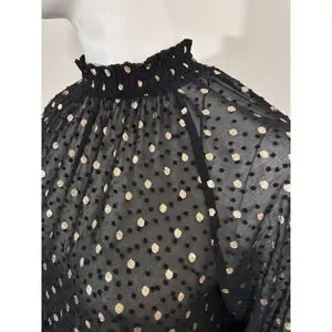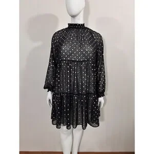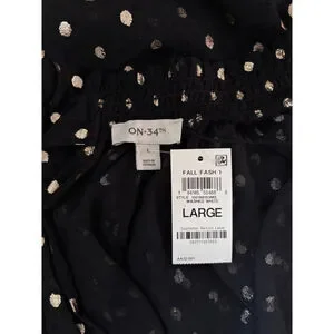 ON 34th Women's Large Black & Metallic Gold Dot Tiered Sheer Dress NWT
