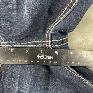 Soundgirl Jeans 7 Flare Y2K Low Rise Union Jack Rhinestone Pocket Dark Wash