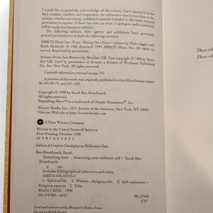 The product is a vintage 1998 first edition hardcover book titled "Something More: Excavating Your Authentic Self" by Sarah Ban Breathnach. Published by Warner Books, it falls under the genres of self-help, women, spirituality, inspirational, and religious life. The book includes a bibliography and index, making it a valuable resource for those looking to explore spirituality and self-realization. With its vintage appeal and personal inscription, this book is a unique and meaningful addition to any collection focusing on religious aspects and personal growth.