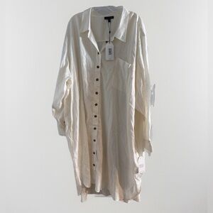 Universal Standard Sea Side Button-Up Shirt Dress Linen Blend Boho XL 14-16