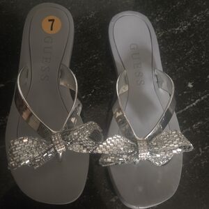 Step out in style with these elegant GUESS sandals. Featuring a sparkling silver design and a chic bow accent, these sandals are perfect for any occasion.