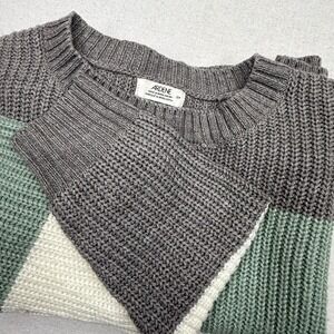 Ardene Color Block Crew Neck Cream/Gray/Green Women Knit Drop Shoulder Sweater S