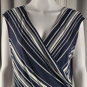 Emma & Michele Blue White Stripe Jersey V Neck Wide Leg Jumpsuit Size Large