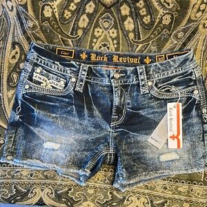 NWT 30 Rock Revival shorts with intricate white stitching. Eye-catching back pocket with beautiful rhinestones throughout🤩 These shorts are beautiful. New with tags, tags are removed‼️