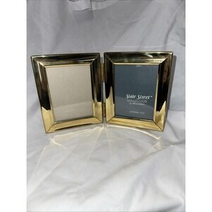 The Burnes of Boston State Street Collection Solid Brass Photo Picture Frame is a stylish and modern frame perfect for all occasions. Made of solid brass in a gold color, this rectangular frame can hold two 3x5 photos in portrait orientation. With an ornate design and clear glass, this frame is a beautiful addition to any home decor. The rear-loading design makes it easy to insert photos, and the free-standing mounting allows for versatile placement. Perfect for adults looking to showcase their favorite memories in a elegant and timeless way.